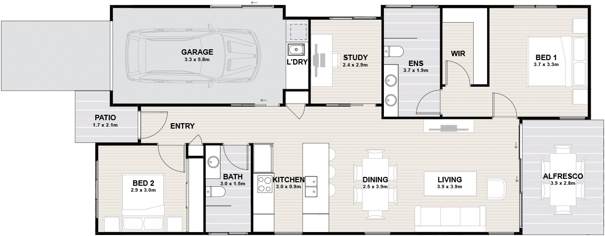 This charming residence features two comfortable bedrooms, with the master featuring a walk-in-robe and generously sized ensuite with a double vanity. A versatile study accommodates a quiet retreat for work or leisure, and the home’s practicality is enhanced by a central bathroom and single garage that connects to the laundry and outdoor line.