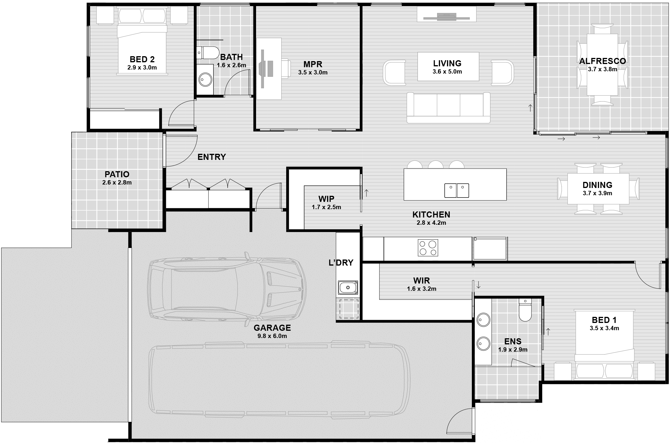 Make no compromises; Douglas offers generous proportions and abundant storage throughout. An entertainer’s dream, it features a walk in pantry, freestanding kitchen island bench and spacious study that can be transformed into a third bedroom for visitors.