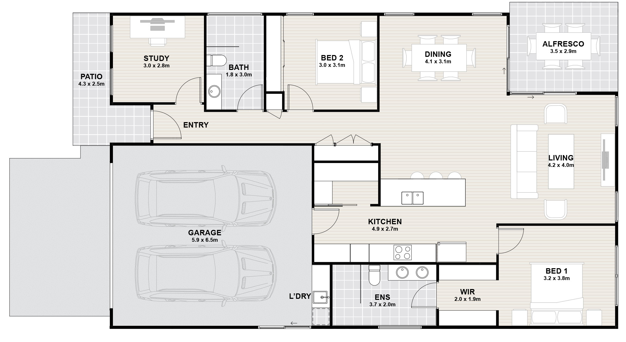 A home designed with generous proportions, the two spacious bedrooms, double vanity in the master bedroom and double garage with a built-in laundry ensure you find an elevated comfort in every day.